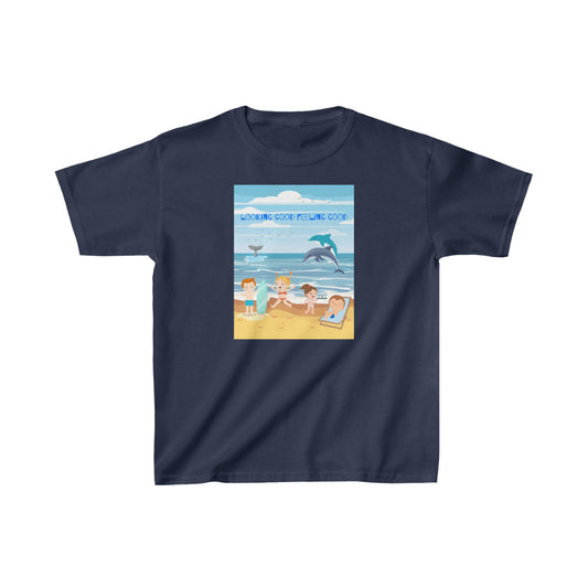 Looking Good; Feeling Good - designed by Sebastian age 8 - Kids Heavy Cotton™ Tee